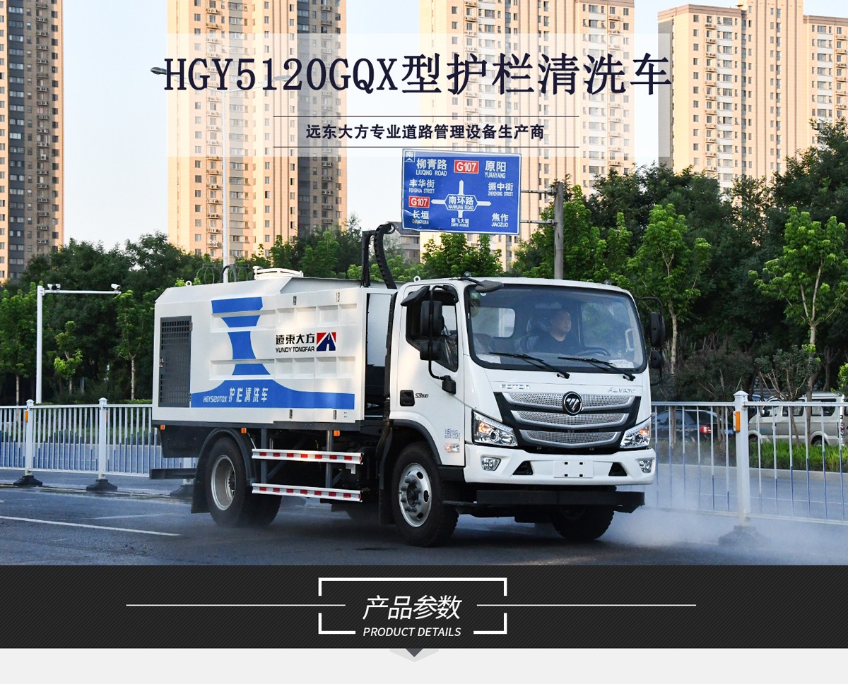 HGY5120GQX型(城市)護欄清洗車適用于城市隔離護欄兩側的快速清洗作業(yè)。該車型選用歐馬可定制底盤,全液壓驅動,多組清洗刷組合實現(xiàn)單向行駛時車輛左右兩側的清洗作業(yè)。